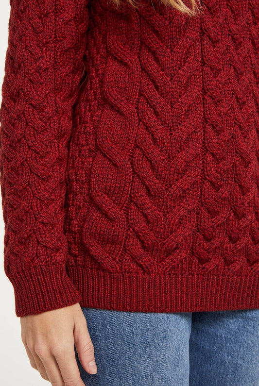 Omey Ladies Aran Crew Neck Sweater - Rua Red: S