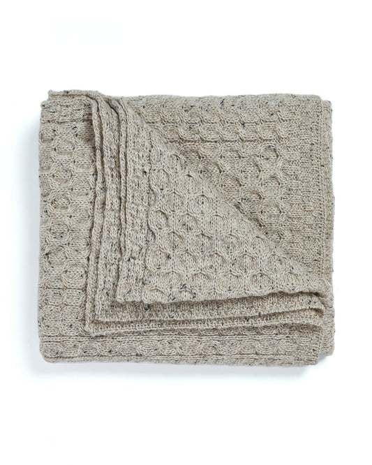 Bertra Aran Classic Wool Blanket - Flecked Oat: 36x60