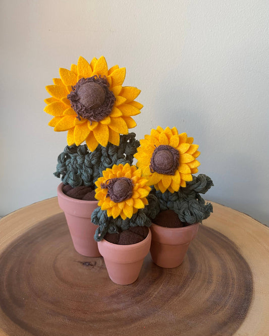 Handmade Forever Felt Sunflower with Macrame Knotted Leaves: Regular