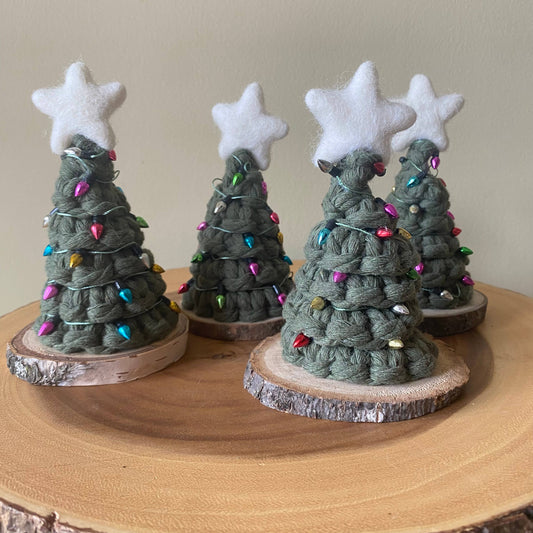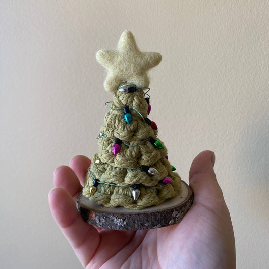 Handmade Mini Macrame Holiday Tree with Non-Working Lights