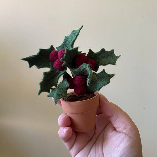 Holiday Holly or Mistletoe Felt Berry & Leaf Ornament: Holly (red berries)
