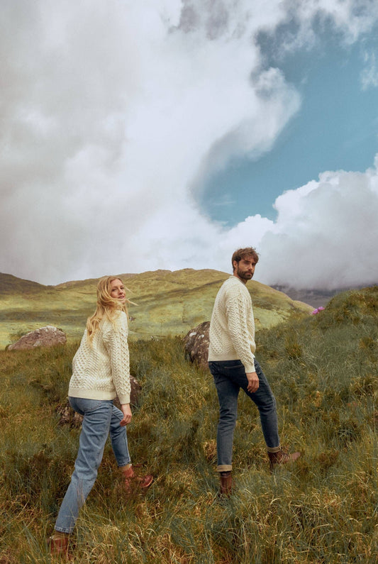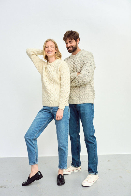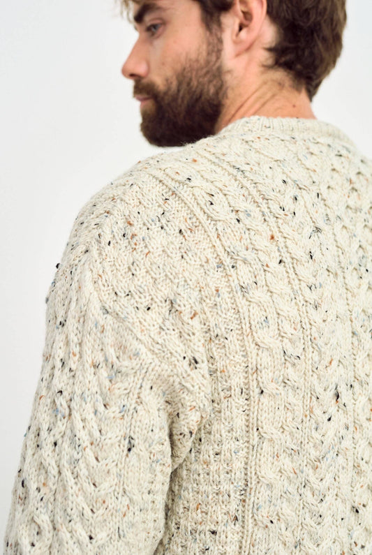 Inishbofin Mens Traditional Aran Sweater - Flecked Cream