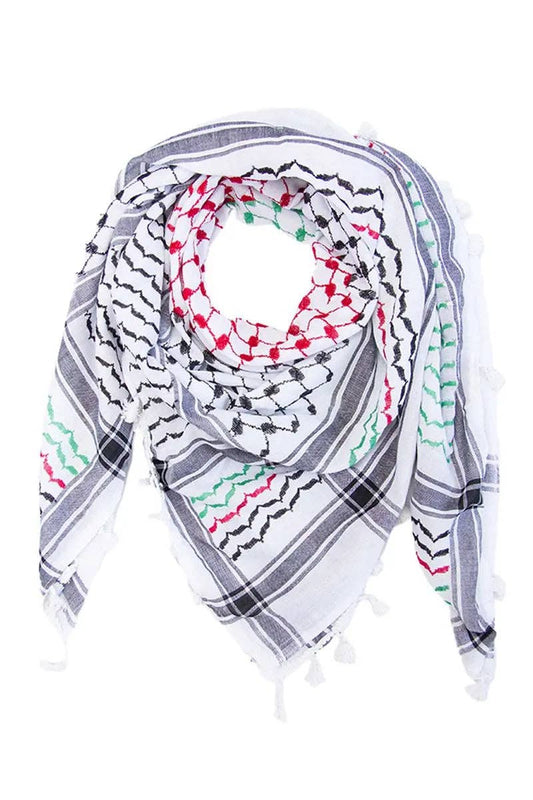 Multicolored Kuffiyeh - Red, Green and Black with Tassels: With Tassels