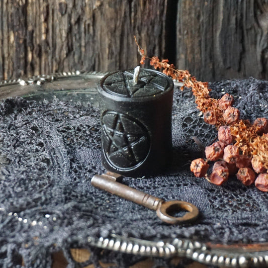 Beeswax Pentacle Candles: Votive Black