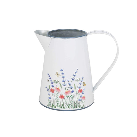 WHITE METAL PITCHER WITH WHITE FLORAL EMBOSS