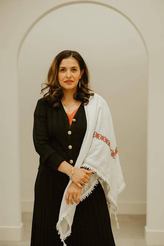 White on White - Hand Embroidered Poppy Kuffiyeh