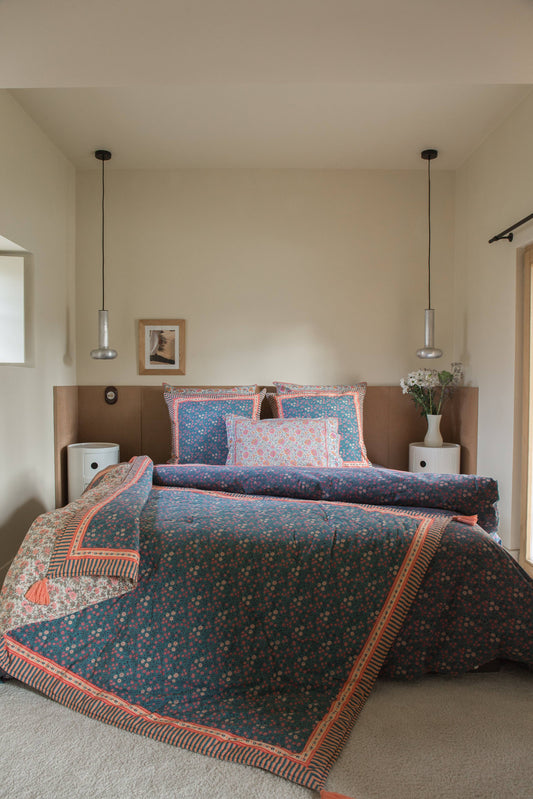 Enoha Plaid - flowers - pink - blue: Jardin d'Éden turquoise / M