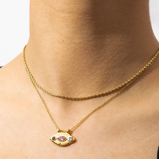 Evil Eye Pink- Trinity stone- Steel 14K gold