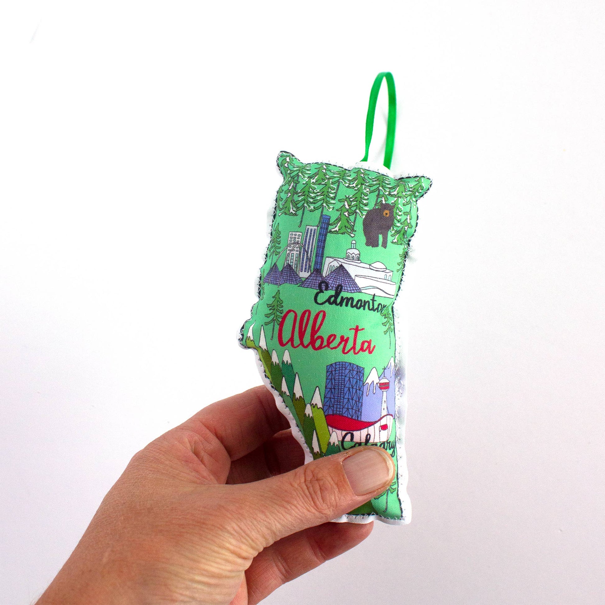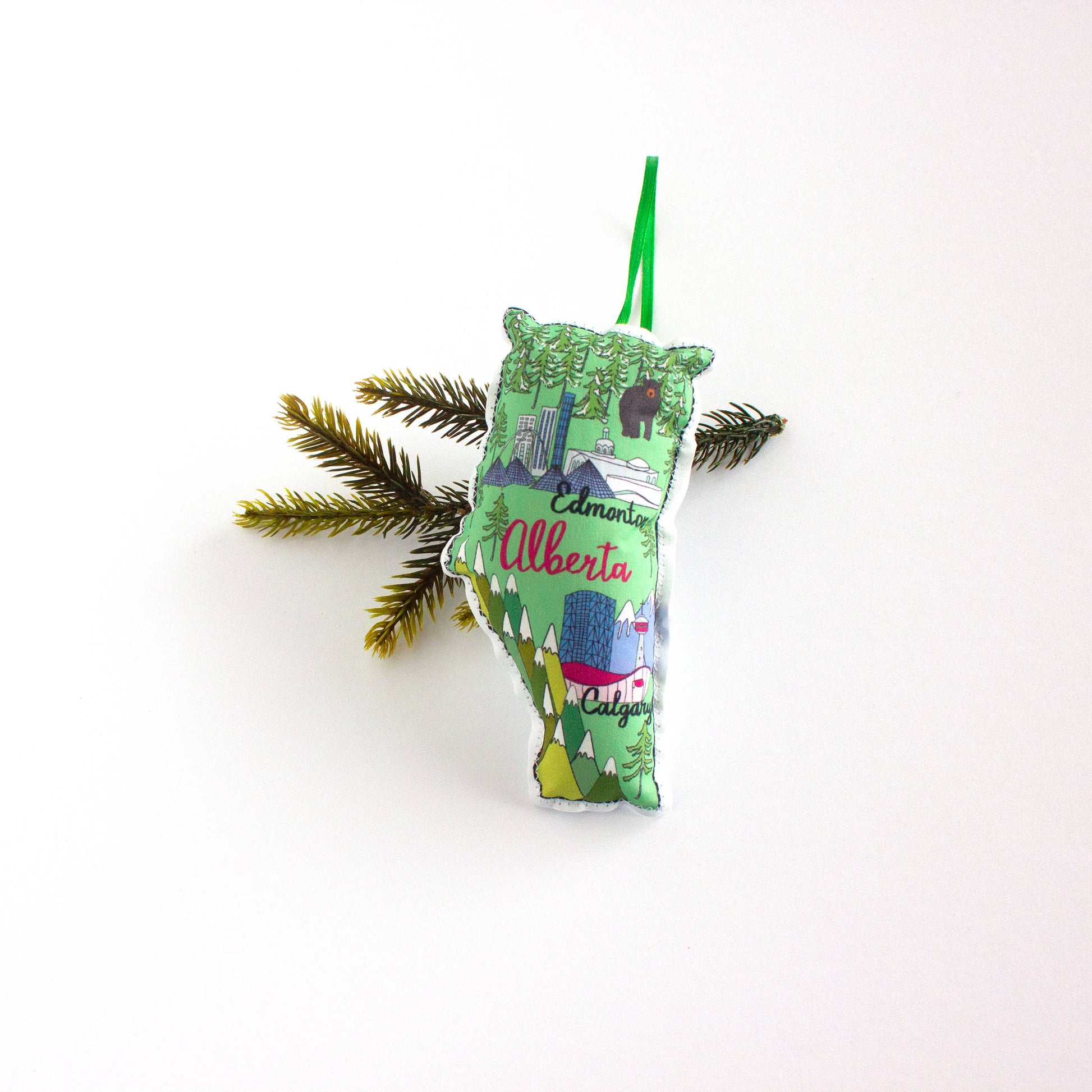 Add some fun and charm to your Christmas tree with this adorable Alberta map. Featuring an illustrated print of Alberta's terrain.