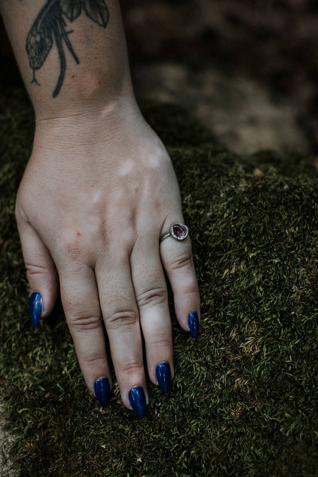 For the soft-hearted mystic with a powerful edge. The Amethyst Pebble Ring features a raw-cut amethyst set into a hand-soldered sterling silver band. Each stone is one-of-a-kind—offering spiritual protection, calm, and a touch of everyday magic.
