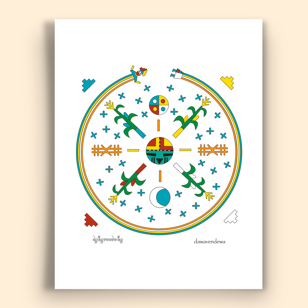 Printed on heavy-gloss card stock measuring 5 by 7 inches (12.7 by 17.78 cm) when folded, our smudge-, fade-, and water-resistant ink ensures its lasting quality. Includes an explanation of the artwork, details about the indigenous culture that inspired it, and a biography of the artist, plus a resealable sleeve
