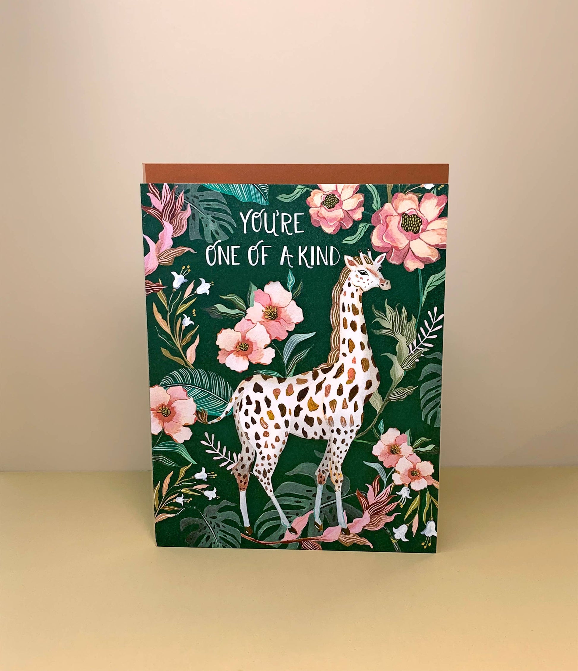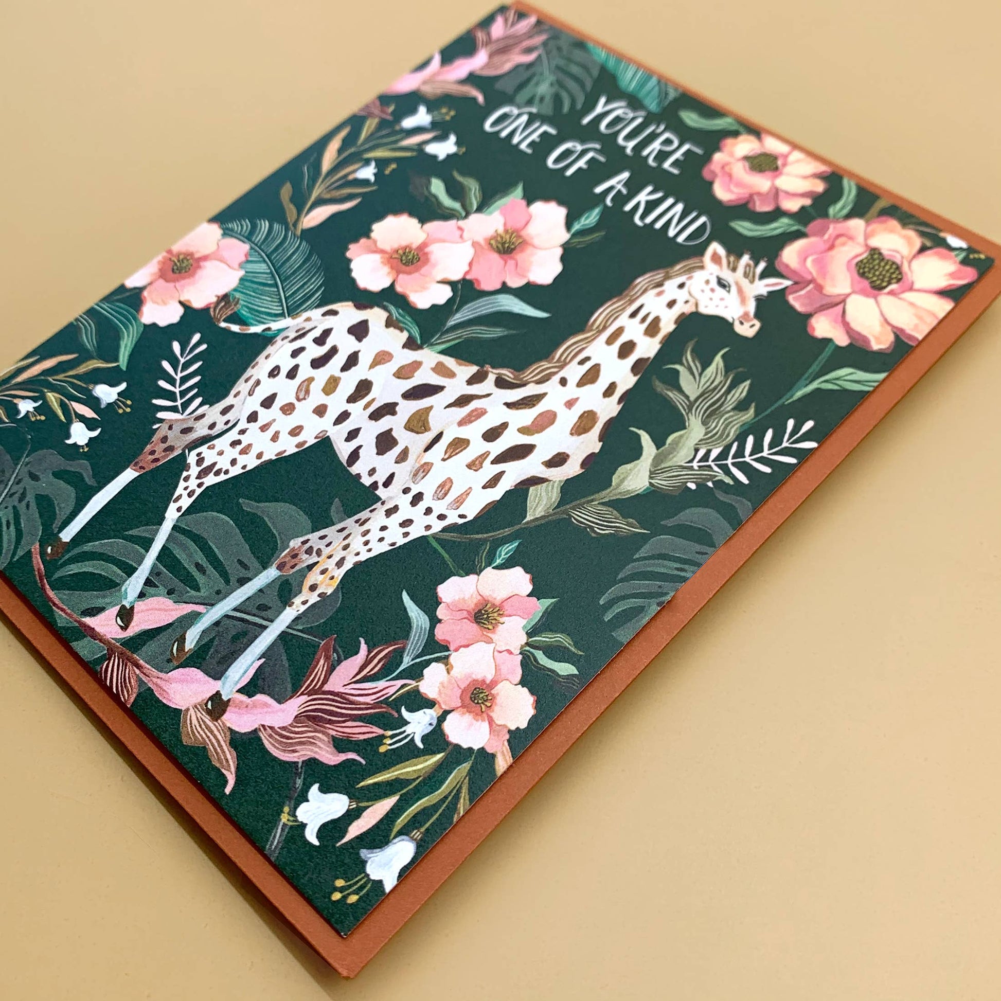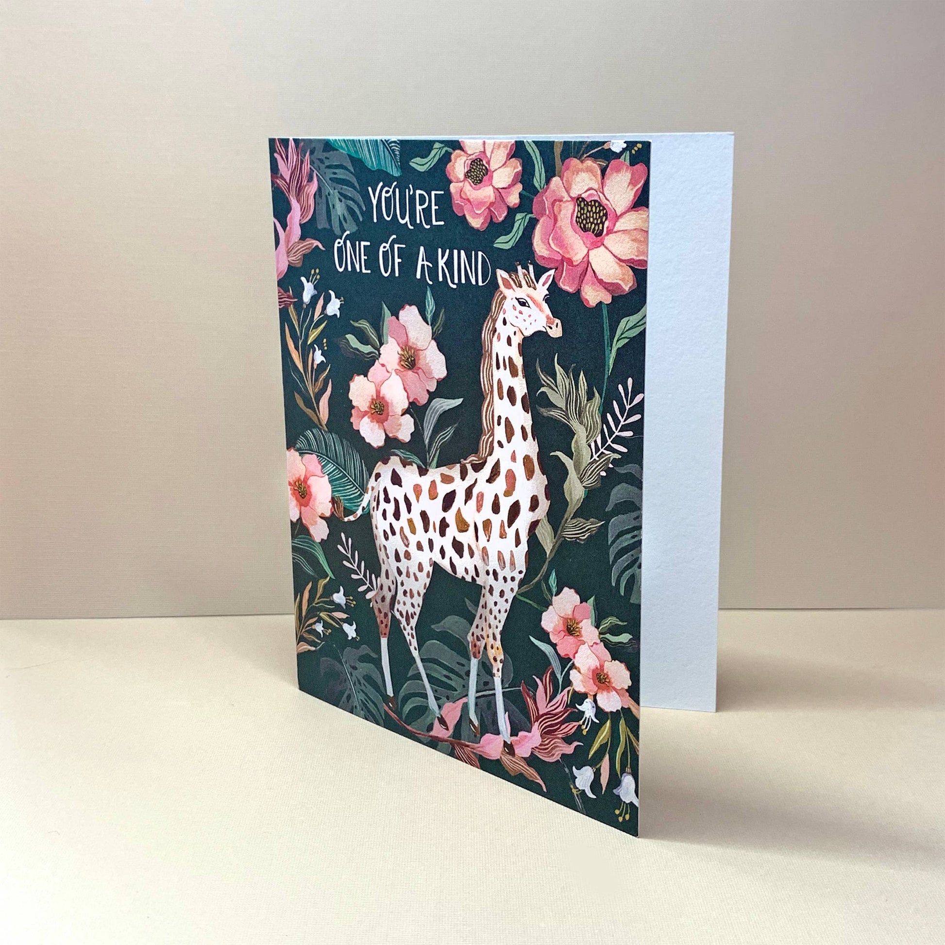 "You're one of a kind" Giraffe greeting card by Christine De Carvalho.