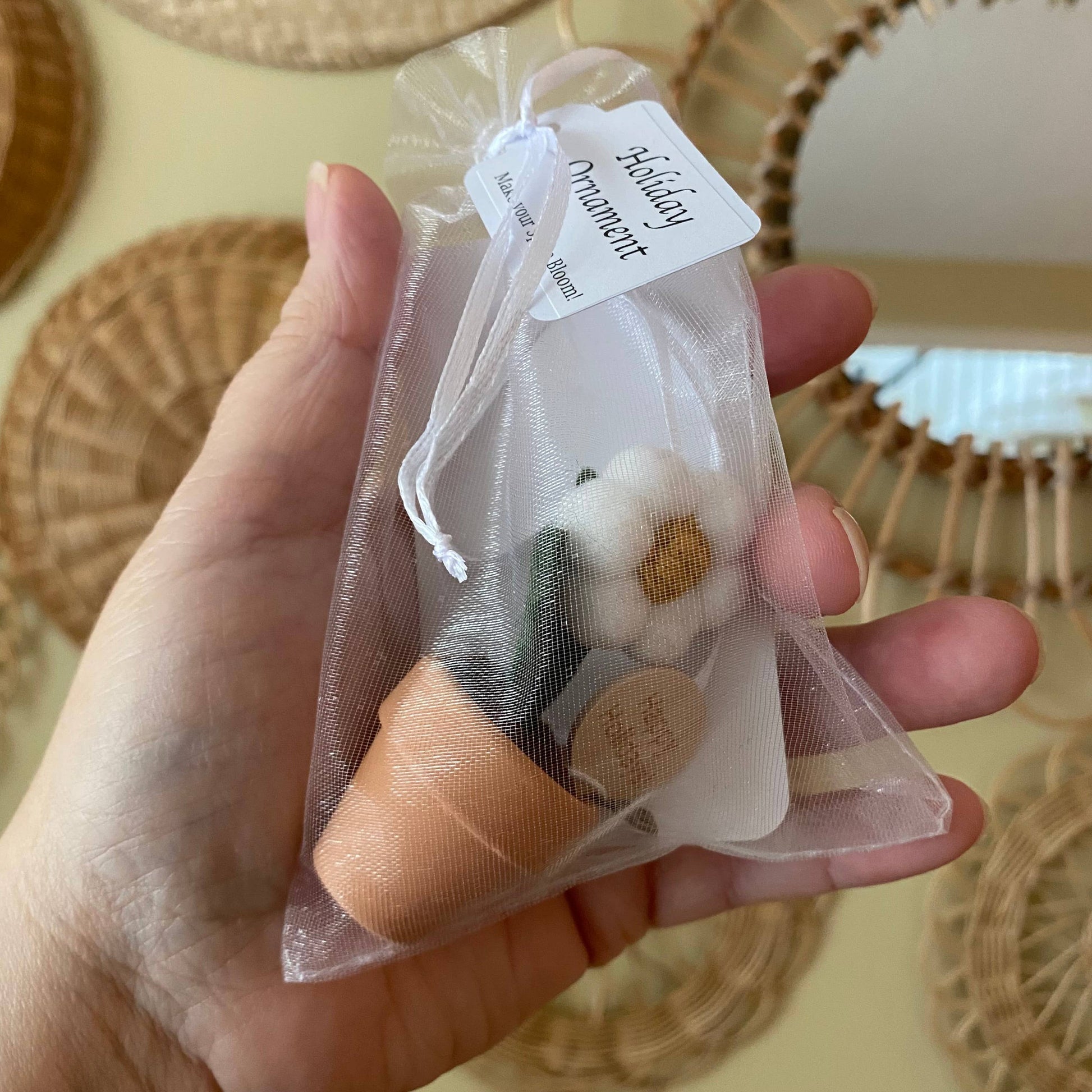 • Each ornament comes retail-ready in an open-top organza bag for easy hanging or basket display and a product tag. Also keeps product tidy and clean!
