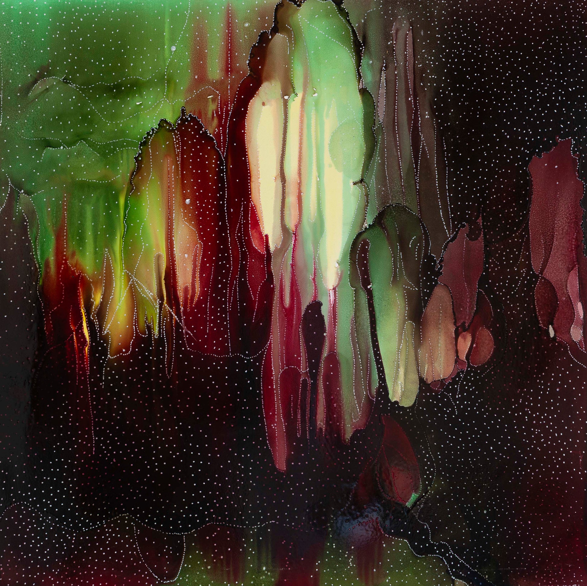 Fire Flies Flicker with Magic, 18" x 18", Alcohol Ink and Acrylic Ink