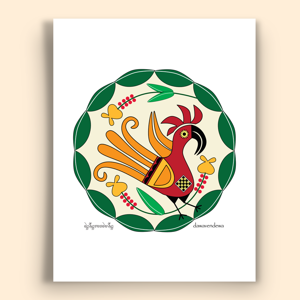 Printed on heavy-gloss card stock measuring 5 by 7 inches (12.7 by 17.78 cm) when folded, our smudge-, fade-, and water-resistant ink ensures its lasting quality. Includes an explanation of the artwork, details about the indigenous culture that inspired it, biography of the artist, plus a resealable sleeve, envelope, and sticker.