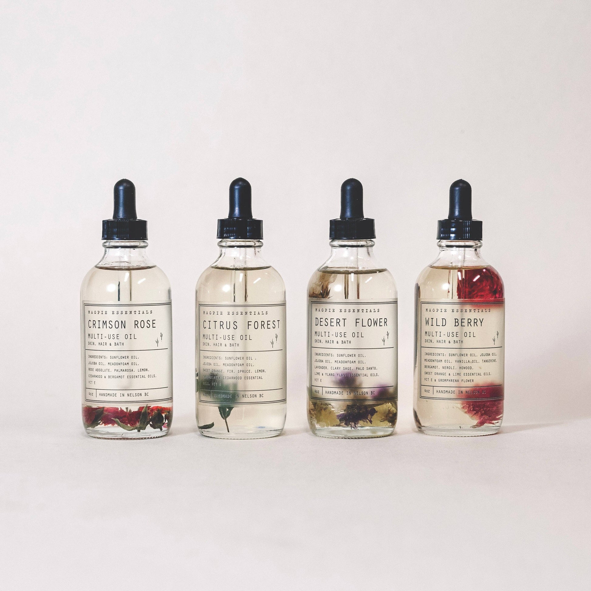 Formulated with nourishing and lightweight oils, these Multi-Use Oils will hydrate and add a touch of magic to your skin and hair. Use as an all over moisturizer or as a bath oil, hair oil, massage oil or cuticle oil.