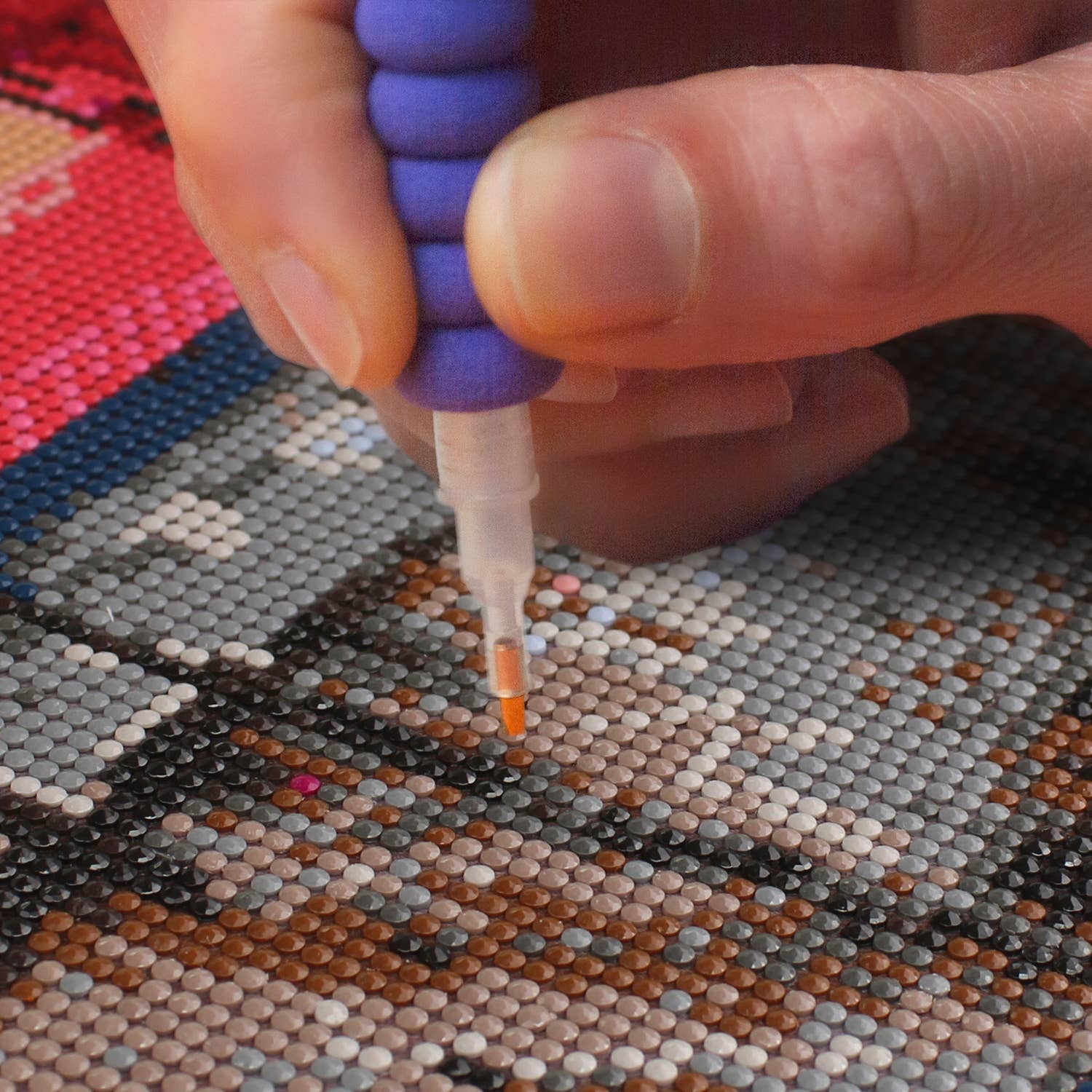 Kits contain: 1 pc High Quality Colour Printed Fabric -CAMELOT DOTS pre-sorted by shade-1 pc each CAMELOT DOTS Craft Tray, Stylus, Soft Grip & Wax-Complete Pictorial Instructions