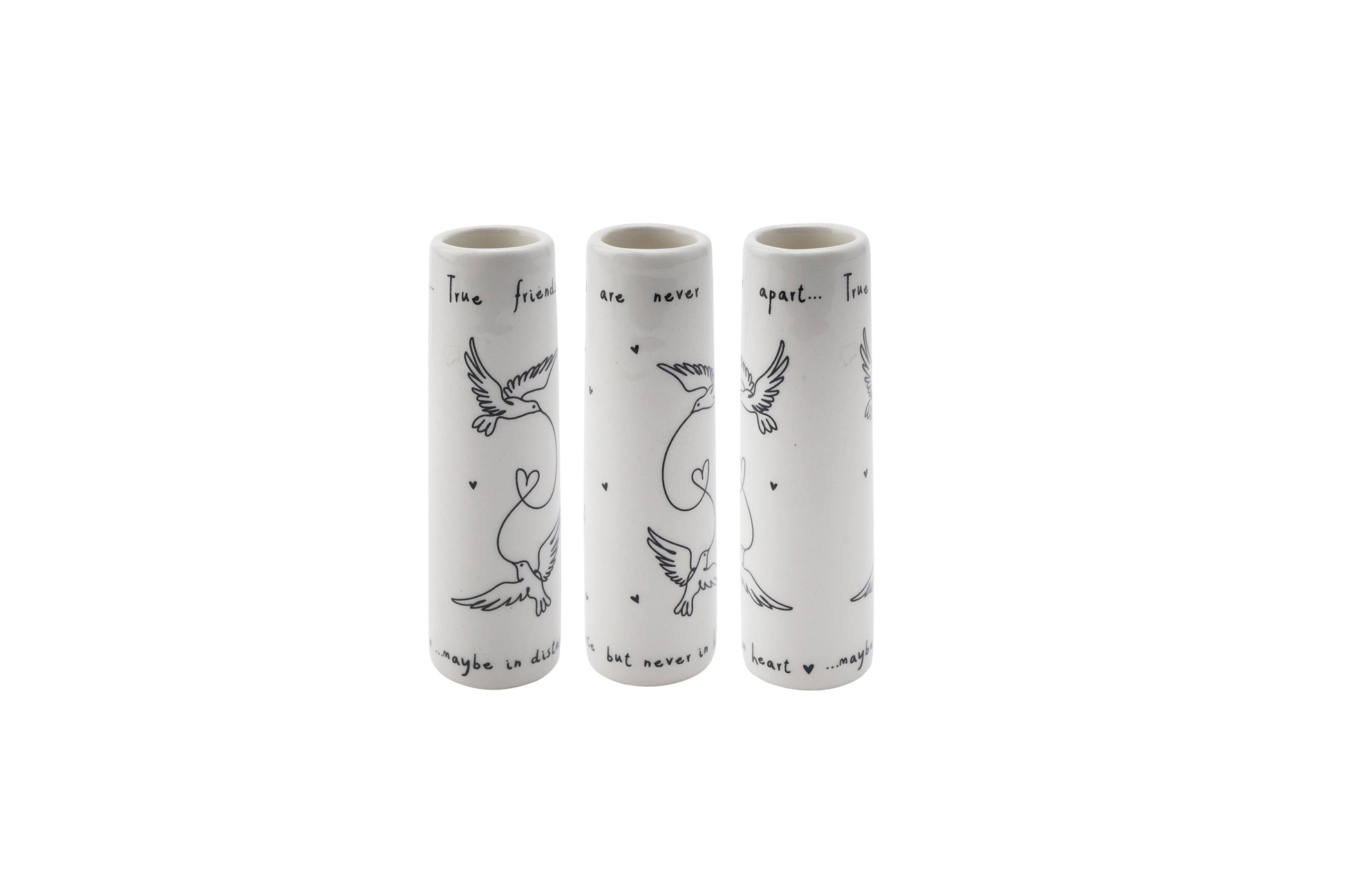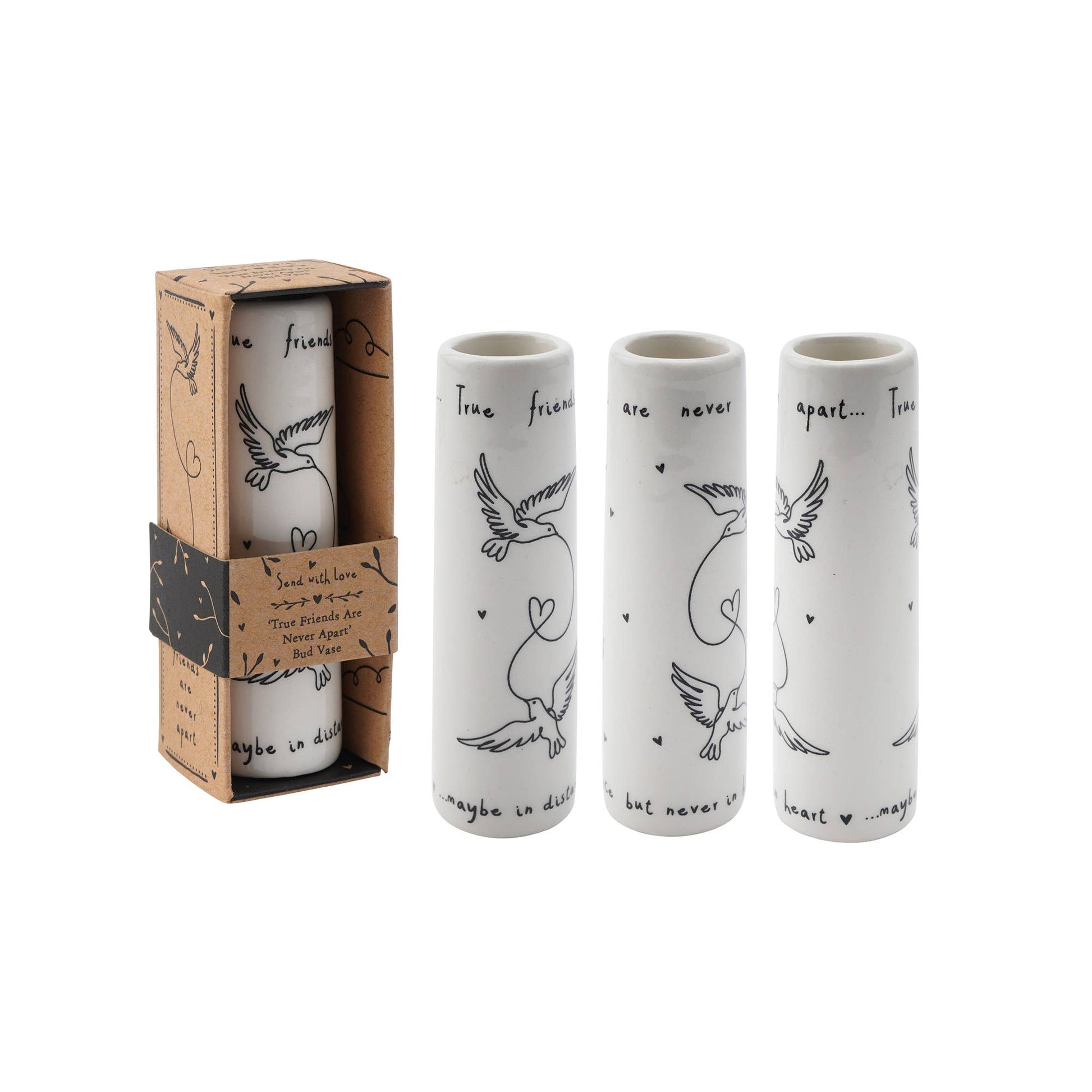 True Friends Are Never Apart | A pretty ceramic vase with an illustrated flying dove and heart design and the slogan ‘True friends are never apart.