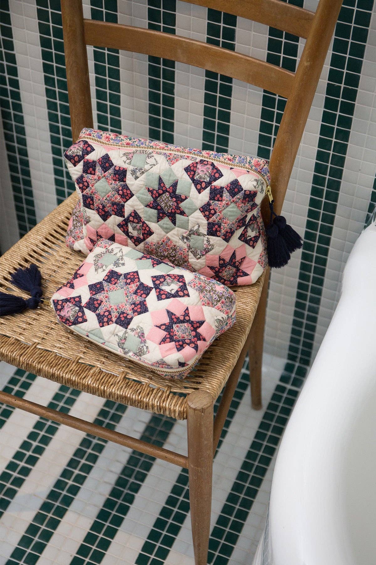 * Quilted cotton pouch.
